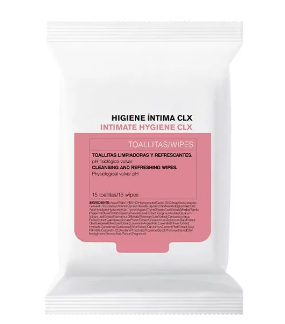 Cumlaude Lab toallitas húmedas CLX, toallitas limpiadoras y refrescantes, adecuadas en casos de desarrollo excesivo de la microbiota intima que provoca ardor o picor.