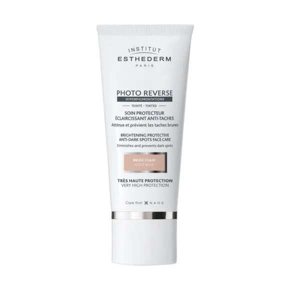 El Photo Reverse Beige Claro de Institut Esthederm es un protector solar de amplio espectro con un toque de color que protege la piel y unifica el tono, ayudando a reducir manchas visibles y prevenir su aparición. Su textura ligera y cobertura natural lo hacen ideal para el uso diario.