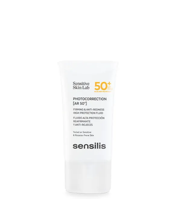 Photocorrection [AR 50+] es para pieles sensibles, con tendencia a rosácea y/o cuperosis que siguen una rutina antirojeces y reafirmante y que buscan un fotoprotector diario hidratante y calmante.»